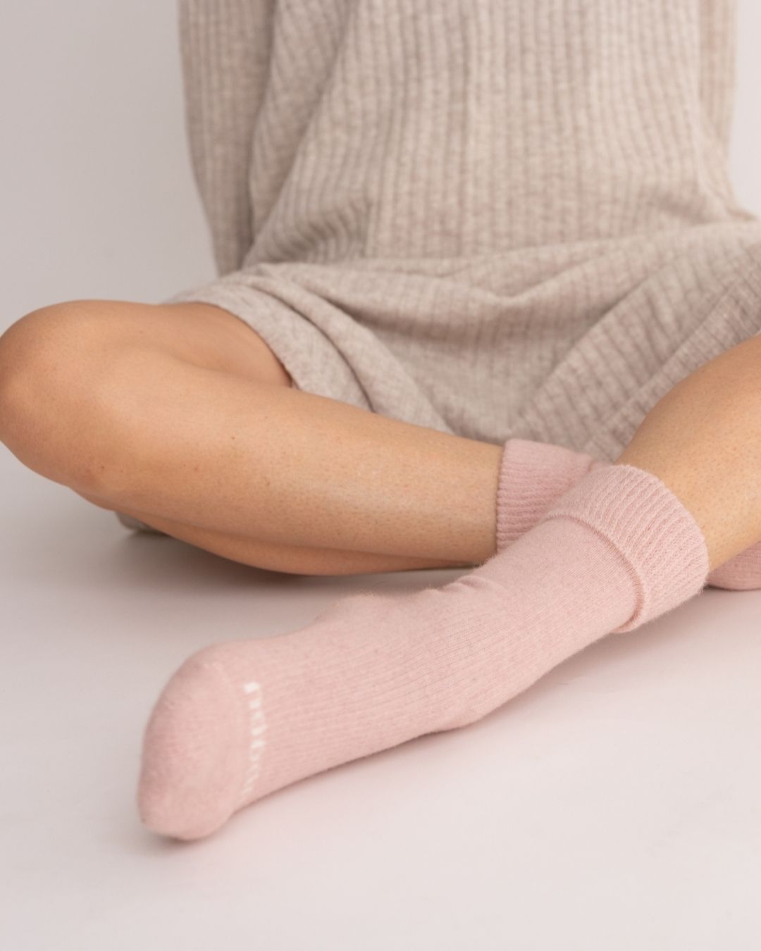 Possum Merino Wool DUNEDIN Socks, Pink Marshmallow + Beige - Small